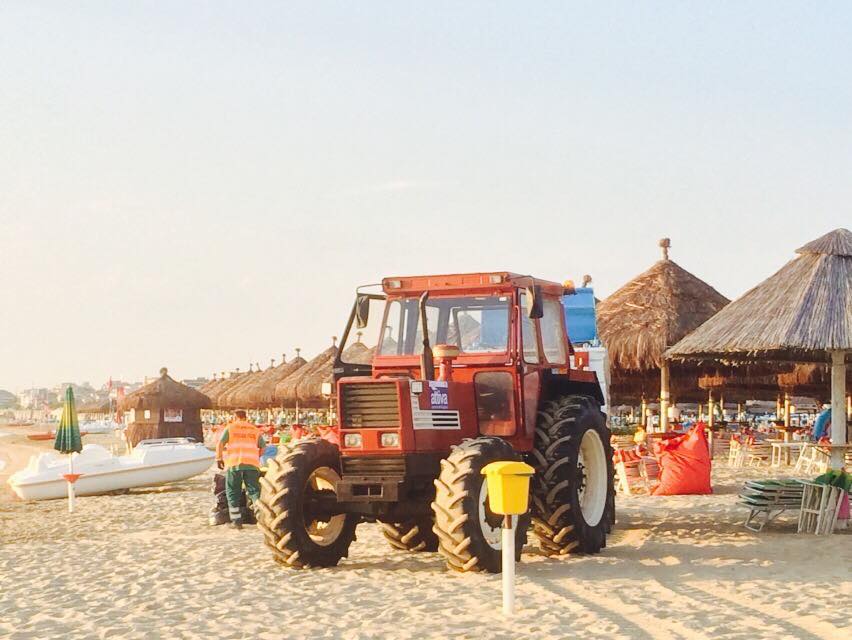 Il Comune manda una squadra di Attiva per pulire il lungomare con le ruspe tra i bagnanti. Non è un bello spettacolo, però..