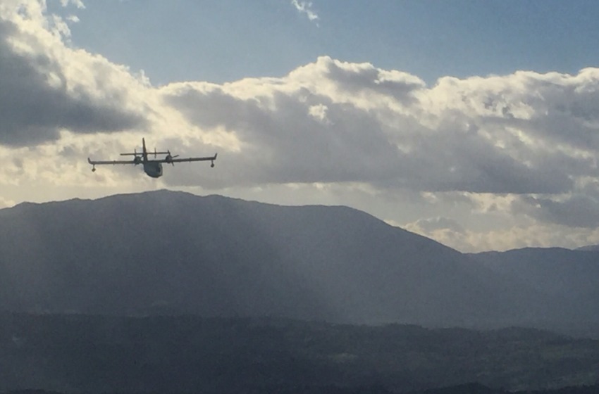 In volo nell’area d’operazione l’aereo Manta 10-03 e l’elicottero 11-11 della Guardia Costiera impegnati in attività di monitoraggio ambientale.