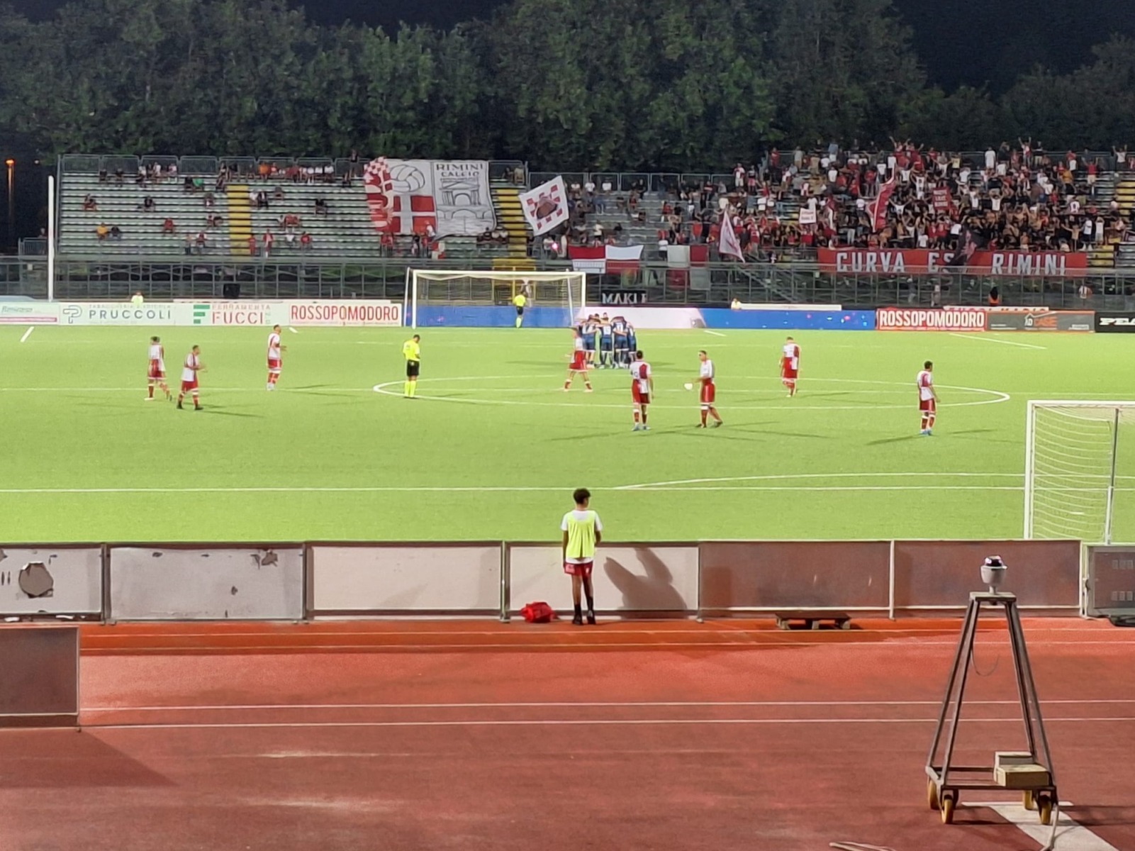 Il Pescara, con 911 tifosi al seguito, espugna il Romeo Neri” dopo 18 anni grazie alla rete di Ferraris a pochi minuti dal triplice fischio finale. L'ultimo successo in terra romagnola risaliva infatti al 18 marzo 2006 (0-2 doppietta di Daniele Croce) ed era il Pescara di Maurizio Sarri. Primo tempo non esaltante per la formazione di Baldini che dopo appena venti minuti ha effettuato un doppio cambio con Lonardi e Valzania al posto di Squizzato e Tunjov. Sul finire della prima frazione uscita disperata di Plizzarri che per evitare la rete si immola e subisce una carica che lo costringerà ad uscire dolorante. Più Rimini che Pescara in questa prima fase anche se non si sono registrati grossi grattacapi per la retroguardia ospite.