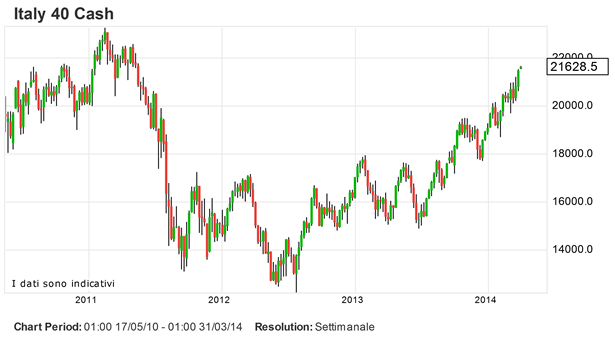 FINANZA E MERCATU: IL FTSE MIB RAGGIUNGE GLI OBIETTIVI PREVISTI. L’indice italiano Ftse Mib raggiunge i target previsti in area 21000-22000 punti. A settembre scrivevo “…potremmo vedere anche il nostro indice raggiungere target ambiziosi quali area 21000-22000 punti… lo so che fare una previsione del genere cioè un’ Italia sopra questi livelli di un ulteriore 20 - 30 % può sembrare, vista la crisi e i dati dell’economia reale, irrealistica e alquanto azzardata, ma è quella che mi sento di fare in questo momento...” .