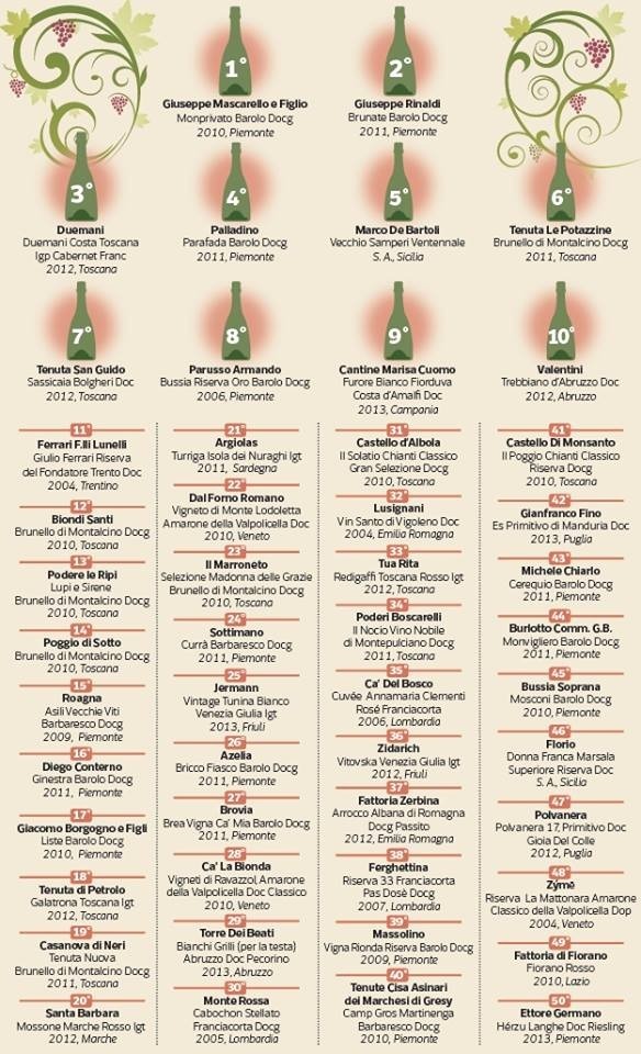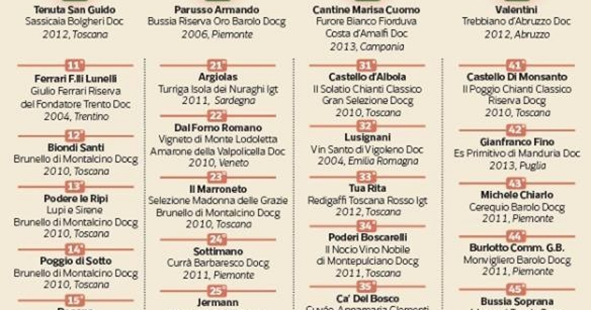 L'azienda agricola Valentini ha confermato la bontà del suo Trebbiano Doc ed il decimo posto in classifica mentre Torre dei Beati ha conquistato il 29esimo posto grazie al pecorino Doc.