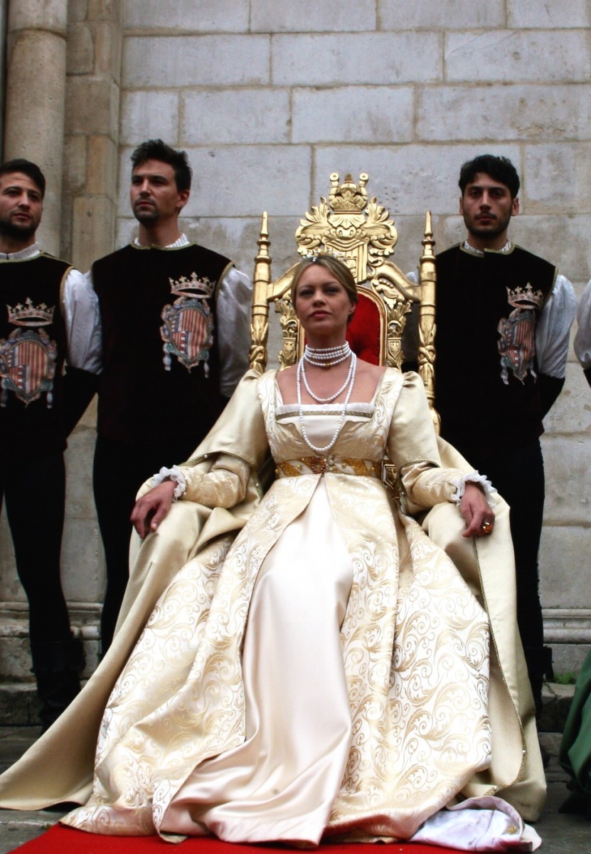 ANNA FALCHI INCANTA SULMONA. Il Palio, realizzato dall'artista Alessandro Angeletti di Roma, e' stato consegnato nelle mani del cavaliere e del capitano di Borgo di S.Maria della Tomba, Franco Ventura, direttamente dall'attrice Anna Falchi, che ha impersonato la regina Giovanna d'Aragona, principessa di Sulmona, nel corteo storico che ha preceduto le sfide finali in piazza Maggiore. "In un'altra occasione ho avuto modo di conoscere la bellissima citta' di Sulmona e sono contenta di esserci tornata per questa meravigliosa festa ed una rievocazione storica significativa come la Giostra cavalleresca, impersonando con molto piacere la regina Giovanna d'Aragona", ha sottolineato l'attrice, che ha preso parte al corteo storico sfilando in sella a un cavallo, scortata da guardie d'onore.