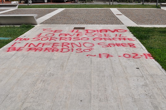NEI GUAI PER UN MESSAGGIO D'AMORE. "Se il Diavolo avesse il tuo sorriso l'inferno sarebbe il Paradiso". Voleva fare colpo sulla sua bella, ma non aveva fatto i conti con l'aridità della legge. Così nemmeno due ore dopo averla realizzata un 14enne di Pescara, l'autore della scritta in vernice rossa dedicata probabilmente ad una deliziosa adolescente di San Giovanni Teatino residente o frequentatrice della piazza di San Rocco, è stato individuato e denunciato.