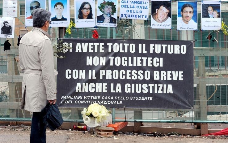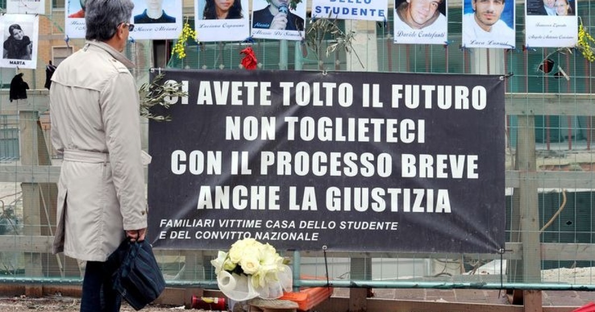 Sentenza crollo Casa dello Studente. Quattro anni di reclusione agli imputati e interdizione dai pubblici uffici