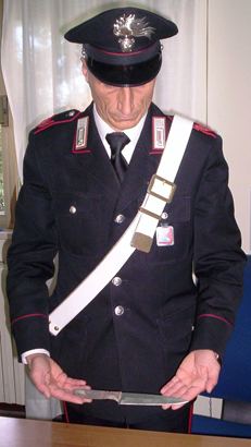 Appena si è allontanato sono stati chiamati i militari di Pianella (PE) i quali hanno immediatamente individuato il soggetto con ancora l’arma da taglio occultata all’interno della tasca interna del giubbino.