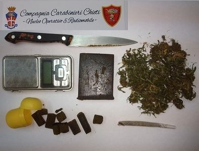 CHIETI: GIOVANE NEI GUAI PER "STORIE DI DROGA. Sorpreso dai Carabinieri con hashish e marijuana 37enne del “Tricalle” finisce agli arresti domiciliari. L’episodio è avvenuto nel tardo pomeriggio di sabato a Chieti. L’uomo stava rientrando a casa quando è stato fermato per un controllo da una pattuglia di Carabinieri del Nucleo Operativo e Radiomobile della Compagnia di Chieti. Il 37enne, visibilmente nervoso per la presenza dei militari, ha insospettito con il suo atteggiamento gli uomini dell’Arma che, dopo averlo perquisito, hanno trovato nelle tasche della sua giacca un grammo di marijuana e altri pezzettini di hashish del peso complessivo di circa 14 grammi. L’uomo ha provato a giustificarsi con i militari nel tentativo di non farli salire a casa dove sapeva di custodire altro stupefacente. Quando però si è reso conto che gli uomini dell’Arma avrebbero perquisito anche la sua abitazione ha capito che le cose si “stavano mettendo male”. In effetti i Carabinieri hanno successivamente recuperato altri tre involucri contenenti 86 grammi di hashish e una scatola con all’interno 15 grammi di marijuana ed un bilancino di precisione. Posto dall’Autorità Giudiziaria agli arresti domiciliari il 37enne è stato processato questa mattina. Il Giudice del Tribunale di Chieti, dopo aver convalidato l’arresto eseguito dai militari dell’Arma, lo ha posto nuovamente agli arresti domiciliari.