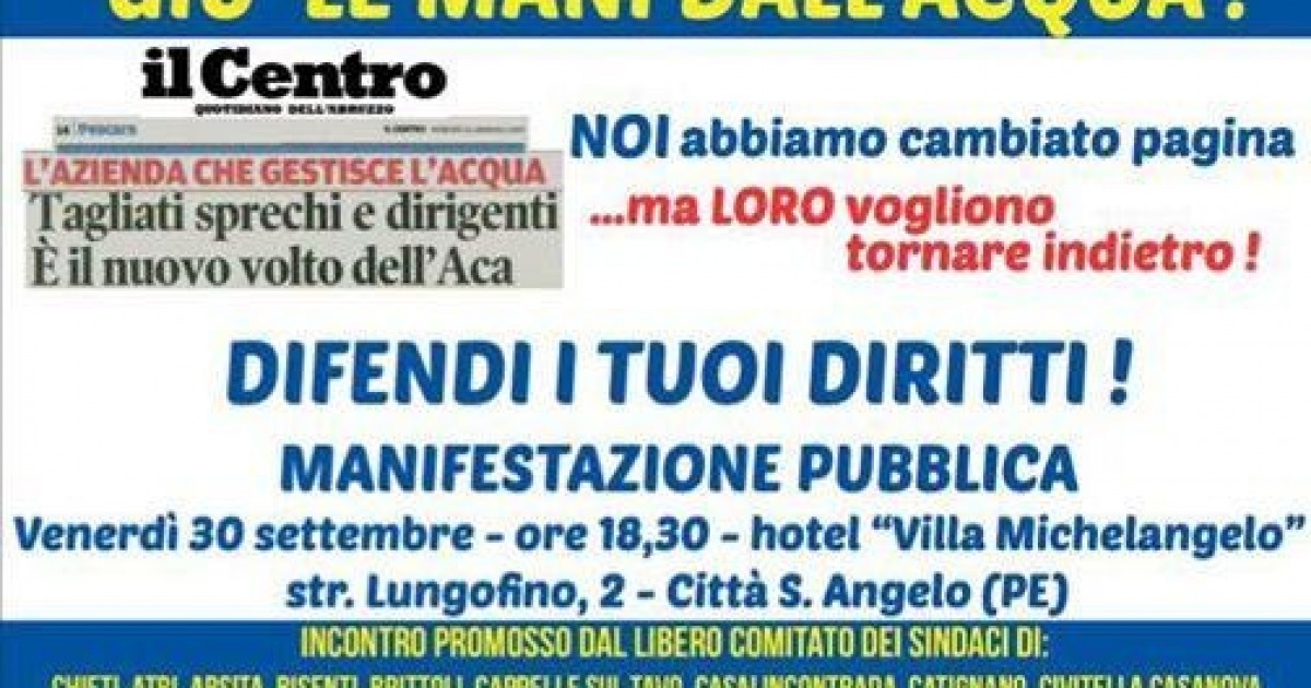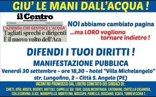 «Un’iniziativa inedita nel panorama politico abruzzese, quella assunta dai sindaci – spiega Di Primio – che intende denunciare all'opinione pubblica il folle tentativo di mettere a rischio una complessa ed articolata procedura di risanamento della società Aca, avviata con la scelta dell’amministratore unico, a fronte dei 120 milioni di euro di debiti cumulati a causa di pregresse e scellerate gestioni politiche degli anni scorsi.