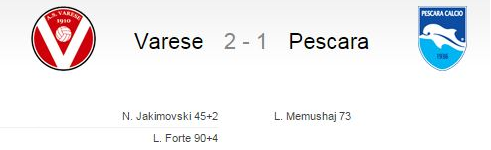 VARESE (4-4-2): la Gorga; Fiamozzi, Luoni, Rossi, De Vito; Culina, Capezzi, Barberis, Jakimovski; Forte, Miracoli. All. Bettinelli.