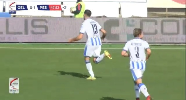 Al14′ Crescenzi spreca una ghiotta occasione per il Pescara, non riuscendo a controllare in area la sfera.