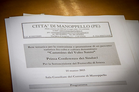IL CAMMINO DEL VOLTO SANTO. Firmato sabato 14 marzo presso la sala consiliare del Comune di Manoppello il protocollo d’intesa tra i Comuni dell’Abruzzo e del Lazio attraversati dal percorso turistico-religioso “Cammino del Volto Santo” e l’associazione di promozione sociale CISC – Centro di Iniziativa Socio Culturale. L’itinerario storico, culturale, ambientale e religioso del Cammino del Volto Santo partirà da Piazza San Pietro in Vaticano per giungere fino alla Basilica del Volto Santo di Manoppello. Sono 24 i Comuni interessati dai 243 km di percorso turistico-devozionale che ripercorrono idealmente il tragitto del pellegrino che nel 1506 portò la Veronica in Abruzzo da Roma.