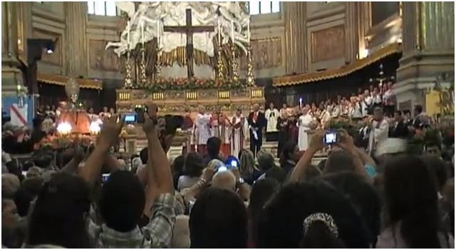 SI RINNOVA IL MIRACOLO DI SAN GENNARO. Ieri il sangue del santo più famoso del mondo si è nuovamente liquefatto. I fedeli, che affollavano la cattedrale dall'alba, con un lungo applauso hanno festeggiato l'evento eitenuto dai napoletani di buon auspicio. La notizia del miracolo del patroni di Napoli stata data alle ore 9.11. E' stato l'arcivescovo di Napoli, cardinale Crescenzio Sepe, ha annunciato l'avvenuta liquefazione del sangue di San Gennaro. Anche a Caroniti si festeggia il miracolo di San Gennaro. Caroniti, in provincia di Vibo Valentia, rivendica di aver dato i natali al Santo.