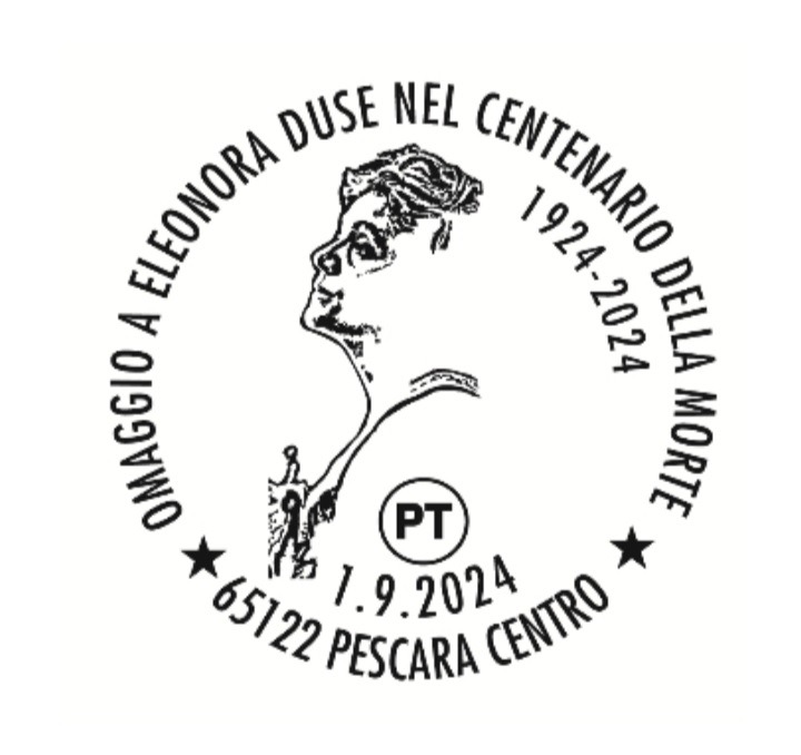 In occasione del Festival Dannunziano, domenica 1° settembre Poste Italiane attiverà a Pescara un servizio filatelico temporaneo con bollo speciale con la dicitura «OMAGGIO A ELEONORA DUSE NEL CENTENARIO DELLA MORTE – 1924-2024», richiesto dalla Fondazione “Il Vittoriale degli Italiani”.