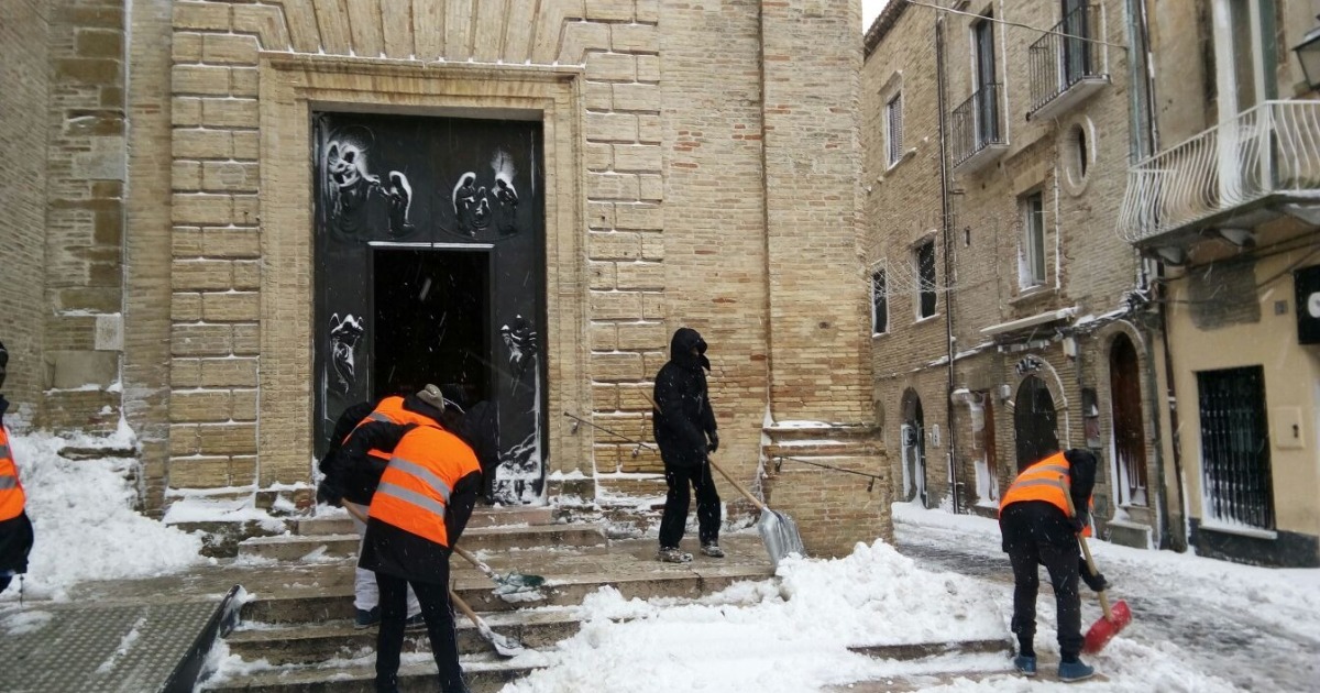 Immigrati volontari rimuovono la neve nel Vastese