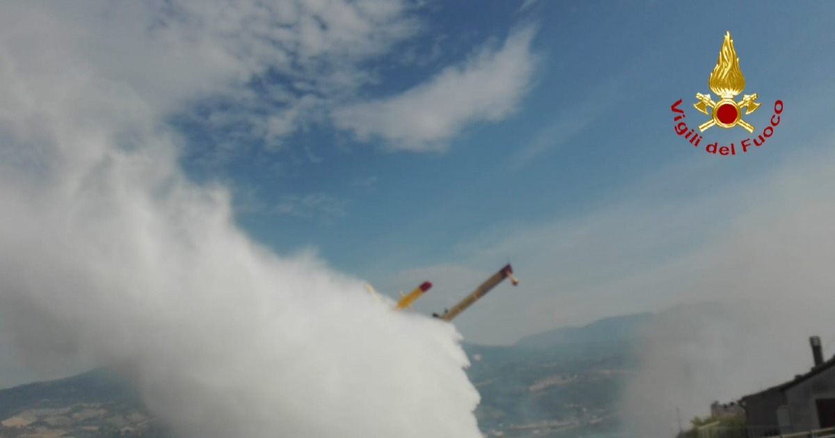 Incendio nelle campagne di Rosciano. Squadre di terra e canadair in azione