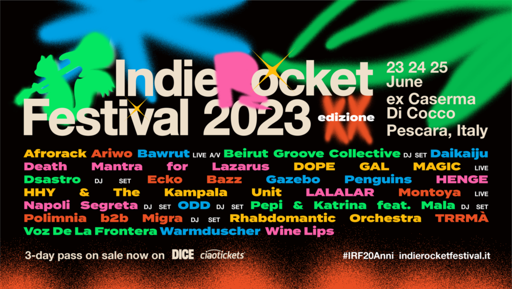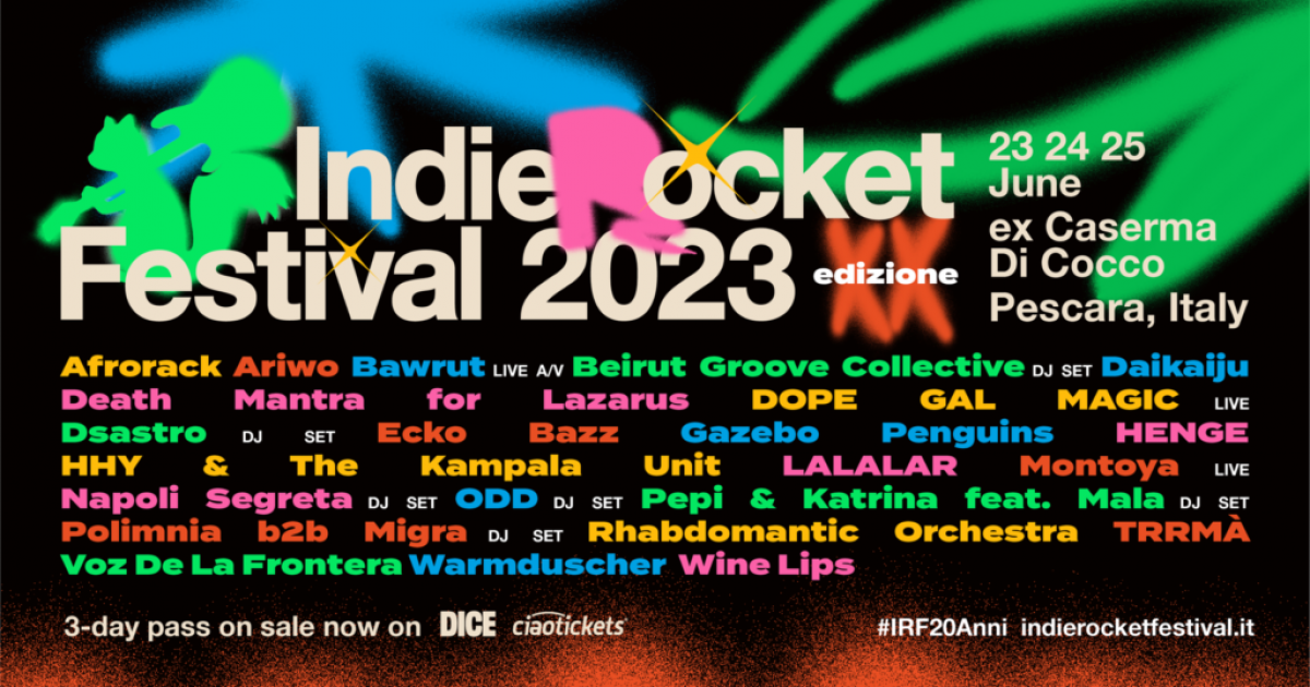 Ai nastri di partenza la storica XX edizione di IndieRocket Festival! Lo scoiattolo cosmico non sta nella coda per la gioia e chiama a raccolta tutto il suo pubblico: l'edizione 2023 che segna il ventennale del festival avrà epicentro a Pescara il 23, 24 e 25 Giugno 2023 al Parco dell'ex Caserma Di Cocco. Vent'anni sono il tempo in cui gli eventi si fanno storia, le relazioni diventano di una vita, le amicizie sono ormai di sempre. Vent'anni sono il momento in cui gli storici iniziano a parlare e chi c'è sempre stato diventa testimone di un'avventura che fiorisce.