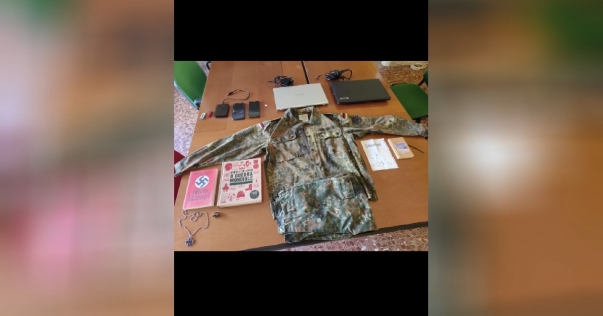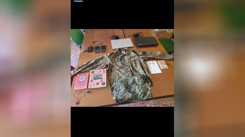 All’interno delle abitazioni sono stati trovati manuali e documenti di matrice suprematista e nazionalsocialista, alcune riproduzioni di armi da sparo prive di tappo rosso, giacche militari da combattimento, passamontagna anche di tipo militare, materiale per l’addestramento soft air e una divisa delle SS.