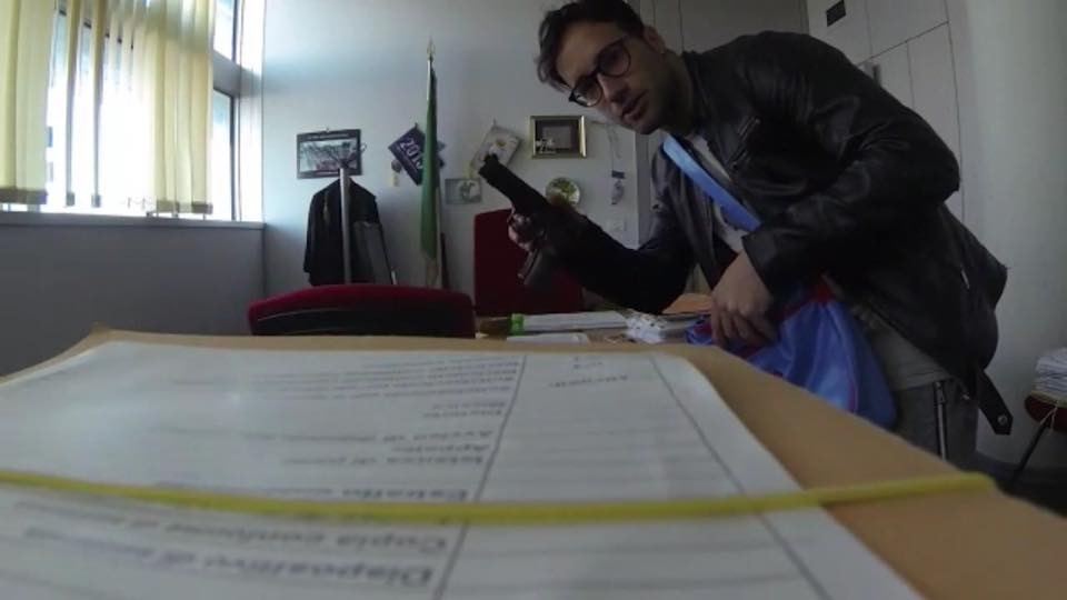 IL FALCO IN TRIBUNALE CON UNA PISTOLA A SALVE. "Dentro un ufficio di un giudice con una pistola...(a salve) Ecco una foto... Tra qualche ora il servizio...Nonostante la strage di ieri la sicurezza nei tribunali e' ancora nulla !! Riflettiamo !!". Con questo post su facebook Mario Ferri alias il Falco di Montesilvano, famoso per alcune invasioni nei campi di calcio in Sudafrica e Brasile, si è messo nei guai da solo. Ferri è entrato in un'alua del tribunale di Pescara quando doveva essere agli arresti domiciliari per precedenti reati. Adesso dovrà rispondere delle accuse di procurato allarme ed evasione.