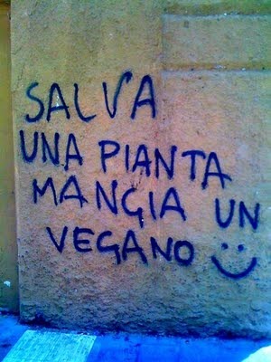 «SALVA UNA PIANTA, MANGIA UN VEGANO» - La mia amica Lucilla ha pubblicato una simpatica foto sulla mia pagina Facebook, che ritrae un muro con la scritta: «Salva una pianta, mangia un vegano». Pur non sentendomi direttamente chiamato in causa, visto che sono un semplice vegetariano (mangio cioè – a differenza dei vegani - anche uova, latte e formaggi), ho pensato di approfittare di questa giornata nevosa per aderire all’invito rivoltomi dal (sub)direttore di Abruzzo Independent, Marco Manzo, e scrivere su questo bel quotidiano on line alcune riflessioni sulla mia scelta alimentare, che pratico all’incirca da quattro anni. Ci siamo conosciuti in piscina, Marco ed io, e lui mi ha ascoltato mentre stavo confidando ad un amico di non essere ingrassato durante le vacanze di natale, visto che, ai pranzi e alle cene comandate, le portate dirette a me (e a mia moglie, anche lei vegetariana) erano ben inferiori rispetto a quelle totali, composte prevalentemente da carne e pesce. Così, mentre si asciugava i capelli nello spogliatoio, Marco mi ha detto: «Perché non scrivi qualcosa sulla tua vita da vegetariano?»
