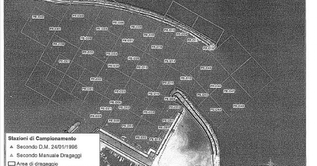 LE ANALISI DELL'ARTA. Utilizzando le stesse metodiche di sempre l’ARTA ha registrato 4 superamenti per il Ddt che riguardano una zona in profondità individuata dai punti D31, D32, D37 e D38 della mappa allegata. Si tratta di punti completamente diversi da quelli oggetto del contenzioso sul Ddt (D01, D02, D03, D04 e D20). I campionamenti per i quali sono stati trovati i superamenti sono stati effettuati il 14 febbraio 2012 a completamento della caratterizzazione della darsena avviata nel 2011. In particolare, nel luglio 2011 sono stati emessi 53 Rapporti di Prova e i restanti 56 (compreso il suddetto) sono di ottobre 2012. In considerazione dell’imponente mole di lavoro i campioni sono stati ripartiti tra i Distretti Provinciali di Pescara, Chieti e L’Aquila e gli esiti sono stati riunificati ad ottobre presso la sede centrale, per essere trasmessi in anteprima al Provveditorato Interregionale alle Opere Pubbliche per Lazio, Abruzzo e Sardegna. Ciò per due ragioni fondamentali: il carattere di urgenza del bando di dragaggio dei fanghi, che era in corso di redazione, in quanto la qualità dei fanghi incide fortemente sul prezzo dell’offerta; in secondo luogo perché l’attività svolta non rientra tra quelle programmate e istituzionali ordinarie dell’ARTA, ma è stata commissionata all’Agenzia dal Commissario Delegato per il dragaggio del porto di Pescara, Guerino Testa, in base all’OPCM (Ordinanza del Presidente del Consiglio dei Ministri) n. 3932 del 7 aprile 2011.