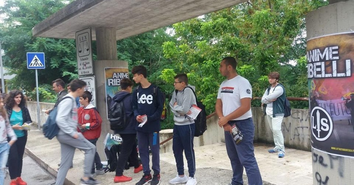 I militanti, fuori dalle scuole di tutta Italia, hanno esposto lo striscione "Anime ribelli" accompagnato da un volantinaggio