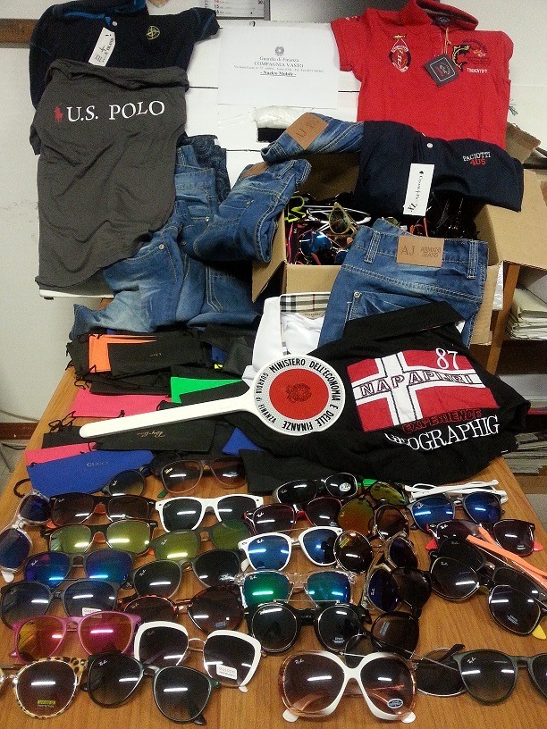 La merce era nascosta dentro alcuni borsoni da viaggio abilmente occultati, al cui interno sono stati rinvenuti diversi articoli recanti loghi di noti marchi abilmente contraffatti, tra i quali, soprattutto, occhiali e capi di abbigliamento.