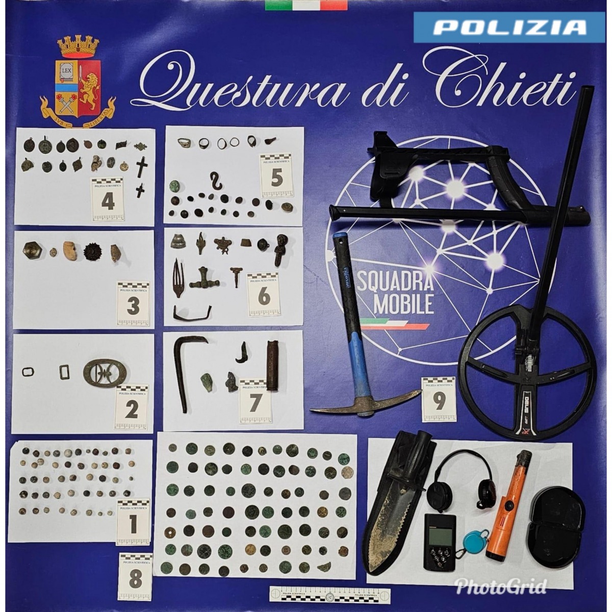 I poliziotti della Squadra Mobile, coordinati dalla Procura della Repubblica di Chieti, hanno sequestrato ad un uomo residente in provincia diverso materiale d’interesse storico che, da quanto accertato dalla Soprintendenza Archeologica, Belle Arti e Paesaggio per le province di Chieti e Pescara, è risultato essere di natura archeologica e numismatica, di epoche comprese tra il I secolo a.C., l’età romana, tardo ellenistica e medievale. L’art. 91 del D.lgs.42/2004 riconosce allo Stato la proprietà degli oggetti di interesse archeologico-storico rinvenuti nel sottosuolo ed in mare e la loro detenzione è consentita solo in presenza di titoli che ne attestino il regolare acquisto o il lascito ereditario. Altresì, il possesso della strumentazione idonea al ritrovamento dei reperti, sequestrata a carico del medesimo, ha concretizzato l’ulteriore ipotesi di reato a suo carico, per la violazione dell’art. 175 dello stesso decreto legislativo e, quindi, per aver effettuato ricerche archeologiche senza concessione e non avendole denunciate nel termine previsto, oltre aireati di furto e occultamento di beni culturali di cui dovrà rispondere.