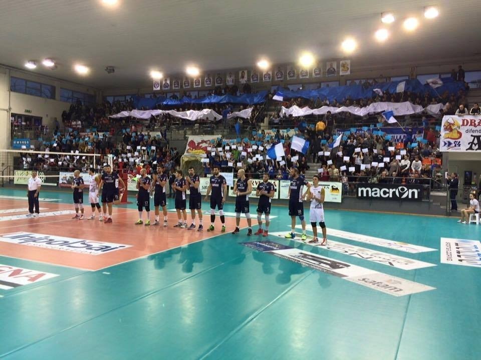 LA GARA VINTA CONTRO METERDOMINI. L'Impavida inizia forte segnando il primo parziale di questa gara;il buon turno in battuta di Di Meo consente agli ortonesi di andare sul 2-6. Castellano mette in campo la sua esperienza infilando un gran pallone tra le mani del muro avversario. ( 8-10) I “veterani” in campo se le tirano e fanno bene, spettacolo al PalaGrotte con il risultato di 13-16. Ortona gioca con la testa e con il “murone” di Moretti sull'opposto pugliese, i ragazzi di coach Lanci si ritrovano a +5. ( 16-21) Sul 17-23 esordio per il portoricano al posto di capitan Lanci per alzare il muro, con i tifosi ortonesi in delirio. Primo set vinto dalla Sieco. 19-25. Squadre di nuovo in campo con poche novità, tranne il vantaggio casalingo sul 4-2. La Materdomini trascinata dall'ottimo ed astuto Pedron allunga sul 10-4. Il 12-4 è effetto del muro granitico di Castellano su Michalovic. Da segnalare il servizio insidioso del giovane LaTorre che lascia sulle gambe l'intera squadra abruzzese. 15-6 al PalaGrotte con Castellano un po' troppo sopra le righe, e con la Sieco stesa. Nunzio Lanci non ci sta e tenta la carta Rivera al posto di Di Meo. Jackson non delude, il muro su Morelli dimostra la sua forza. L'Impavida cerca la reazione. L'ace dello stesso Rivera costringe coach Castiglia ( coach Fanizza impegnato nelle finali di Boy League a Cesenatico) a fermare il gioco. (20-11) Sul 22-15 nuovo cambio in casa Impavida con Matricardi al posto di Lanci. Ortona dimostra carattere ma cede il parziale sul 25-18. Terzo set con Rivera in campo e con il suo ace ad aprire le danze. Segue Moretti che con un nuovo punto in battuta porta i suoi sul +4 (2-6). Morelli dal canto suo sente il peso di essere il bomber in carica e martella senza sosta. (6-10) Rientra Castellana in partita e al time out tecnico solo due lunghezze dividono le due formazioni. ( 10-12) Parità...sul 15-15 sembra di vivere nella casa degli “errori”. Rivera show ma è sempre Morelli a rovinare i piani impavidi. 19-20 con le palpitazioni. Errori in casa Sieco con Lanci costretto a chiamare i suoi in panca. (22-23) Cisolla sbaglia il servizio, poi errore di formazione e di nuovo 24-24. Set point annullato dal solito opposto foggiano, ma Michalovic mette il sigillo fermando proprio Morelli e regalando cosi la gioia immensa ai tifosi ortonesi. (25-27) Quarta frazione al via, Di Meo in campo al posto di Rivera. La Sieco Service cade di nuovo nel sonno profondo e Castellana approfitta. (7-4) Al time out 12-5 con i pugliesi poco fallosi al contrario degli ospiti. Reazione fu...per l'ennesima volta, ma per vincere ci vuole grinta e determinazione e ora Ortona ne ha ancora poca. ( 17-11) Giosa non perdona Michalovic e Morelli mette la ciliegina sulla torta. 22-15 con i tifosi “impavidi” completamente allibiti. L'opposto di Castellana vuole il premio per miglior realizzatore e mette una firma grossa come una casa sulla partita. Prestazione sopra le righe per lui che regala il tie-breack ai suoi. ( quarto set finito 25-18). Cacciare gli attributi è imperativo ora per capitan Lanci e compagni. Si parte con il 0-6 impavido ma è una gara che stenta a non dare spettacolo. Di nuovo vicini sul 4-8. Ora Di Meo mette giù due palle pesantissime e 5-11 al PalaGrotte in una vera e propria bolgia. Servizio dato buono, con proteste ortonesi, al giovane Latorre portano di nuovo il risultato in bilico.( 8-12) Morelli zittisce Castellano a muro e con la battuta out dello stesso Castellano la Sieco Service può finalmente gioire.