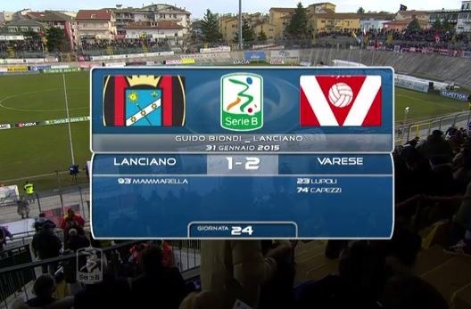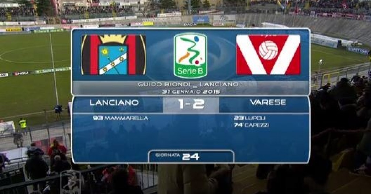LANCIANO CADE IN CASA CONTRO VARESE 1-2 Uno strano Lanciano cede la posta piena ai lombardi del Varese che passano al "Biondi" con le reti di Lupoli (22') e Capezzi (93'). Inutile la rete, grandissima, di capitan Mammarella allo scadere della gara. La Virtus di D'Aversa ha molto di che recriminare, soprattutto per le varie occasioni sprecate nel primo e nel secondo tempo, complici sia l'imprecisione degli attaccanti rossoneri che la sfortuna come nel palo colpito da Grossi. Stavolta è andata male ma c'è tempo per recuperare e puntare ad obiettivi. Sabato prossimo c'è la sfida al Frosinone che ha soltanto un punto in classifica in più dei frentani (35).