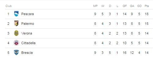 TABELLINO: PESCARA 0 CITTADELLA 1 (primo tempo 0-0)