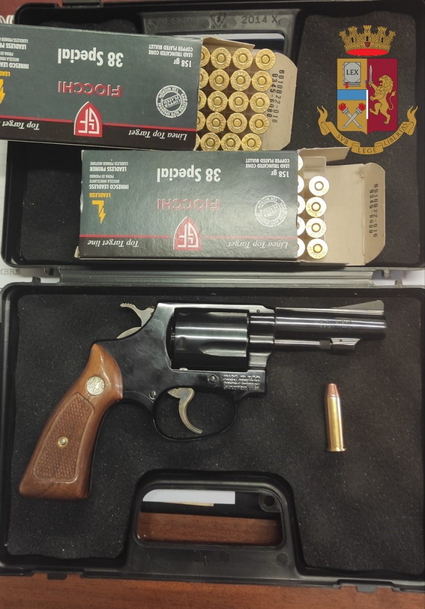 Il primo accertamento compiuto dai poliziotti ha riguardato il possesso di armi e la Divisione Polizia Amministrativa e Sociale si è resa conto che l’uomo aveva acquistato un revolver Smith & Wesson 38 special e due scatole di munizioni in un’armeria di Pescara, proprio il giorno prima della denuncia della donna procedendo immediatamente al sequestro cautelativo dell’arma e delle munizioni.