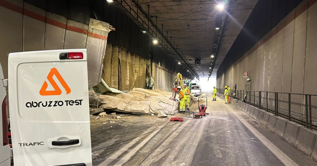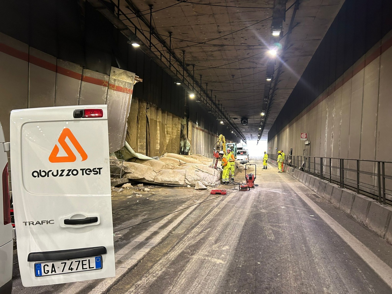 Nella foto l’azienda Abruzzo Test Srl che su incarico dall’Anas (che ha la competenza della strada) sta effettuando prove tecniche sulla stabilità della galleria.