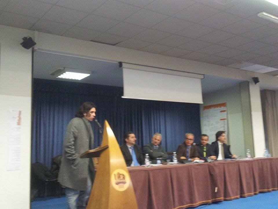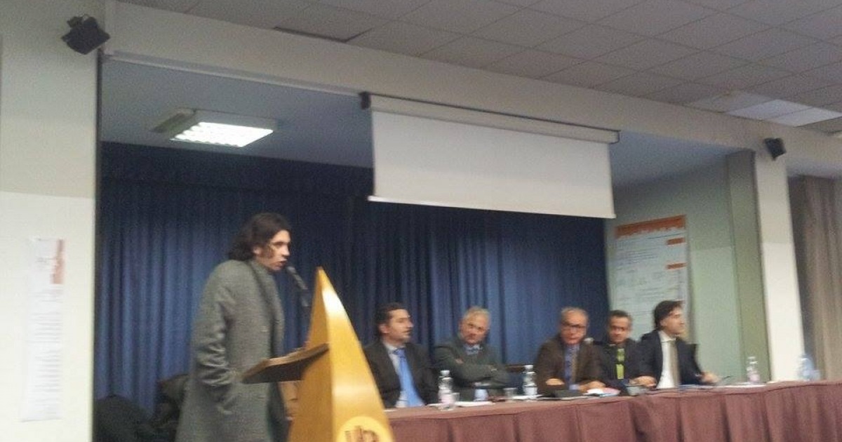 Nella foto: il subdirettore Marco Manzo che parla dell'emergenza nella sala Federico Caffè dell'Università d'Annunzio.