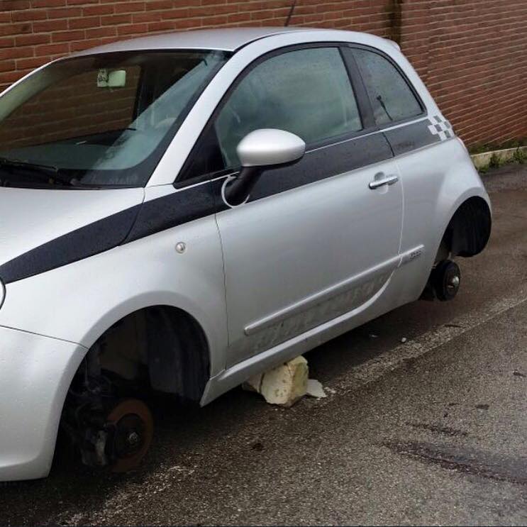 Attualemente sono i casi di autovetture colpite dai ladri, smontate e lasciate su quattro mattoni sono tre mentre le zone colpite via del castello, via del mulino e via dietro le mura.