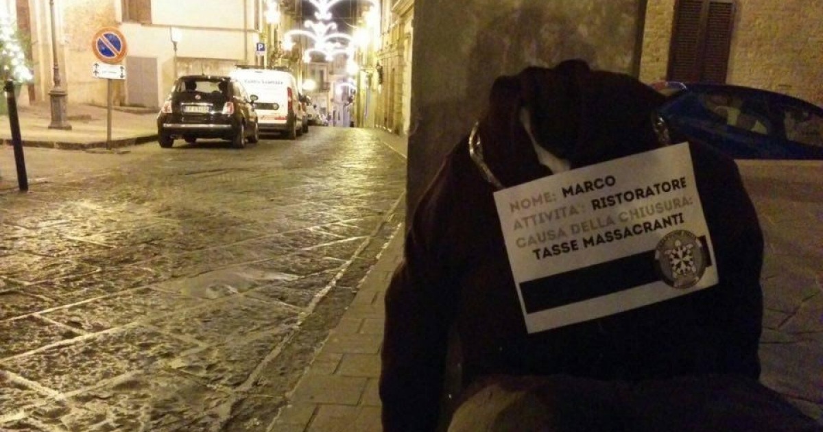 Questa la protesta messa in atto da CasaPound contro la crisi che sta colpendo diverse attività cittadine