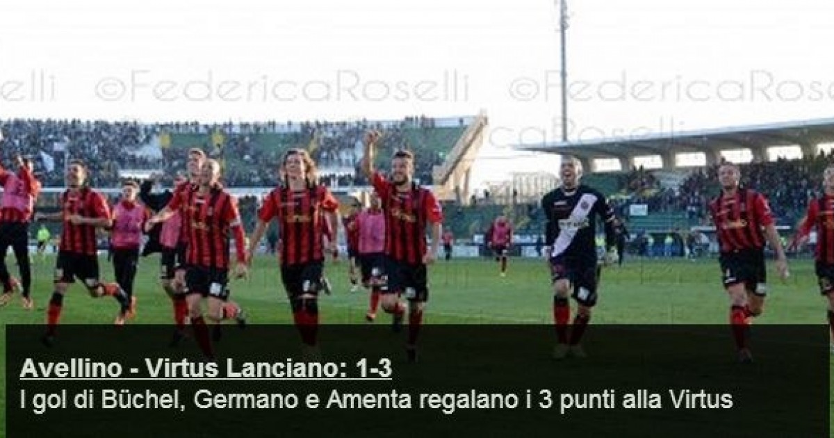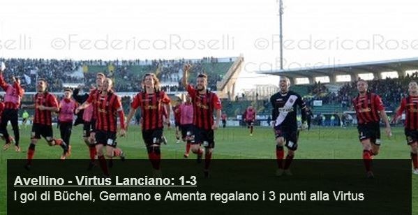 LA VIRTUS STRARIPA AD AVELLINO 1 A 3 E BALZA AL TERZO POSTO IN CLASSIFICA.Ora che la Virtus Lanciano ha sbancato al Partenio di Avellino, e scavalcato gli irpini in classifica, la fatidica quota 50 punti, necessari per la salvezza e relativa permanenza nella serie cadetta, è a portata di mano e la possibilità di partecipare ai play off diventa sempre più concreta. Gli abruzzesi,hanno vinto con merito per 3 a 1 contro i campani e con 40 punti balzano al terzo posto subito dopoPalermo e Empoli. Baroni ha fatto scendere in campo una formazione inedita disponendo i rosso-nerisecondo un insolito schema 3-5-2. Mammarella, infortunato, è stato sostituito da Ferrario, mentre, acentro campo, Paghera ha preso il posto di Minotti squalificato. In avanti, l'assenza forzata di Turchi,per problemi muscolari, ha convinto il tecnico frentano a schierare solo Comi e Piccolo, mandando in panchina De Cecco.