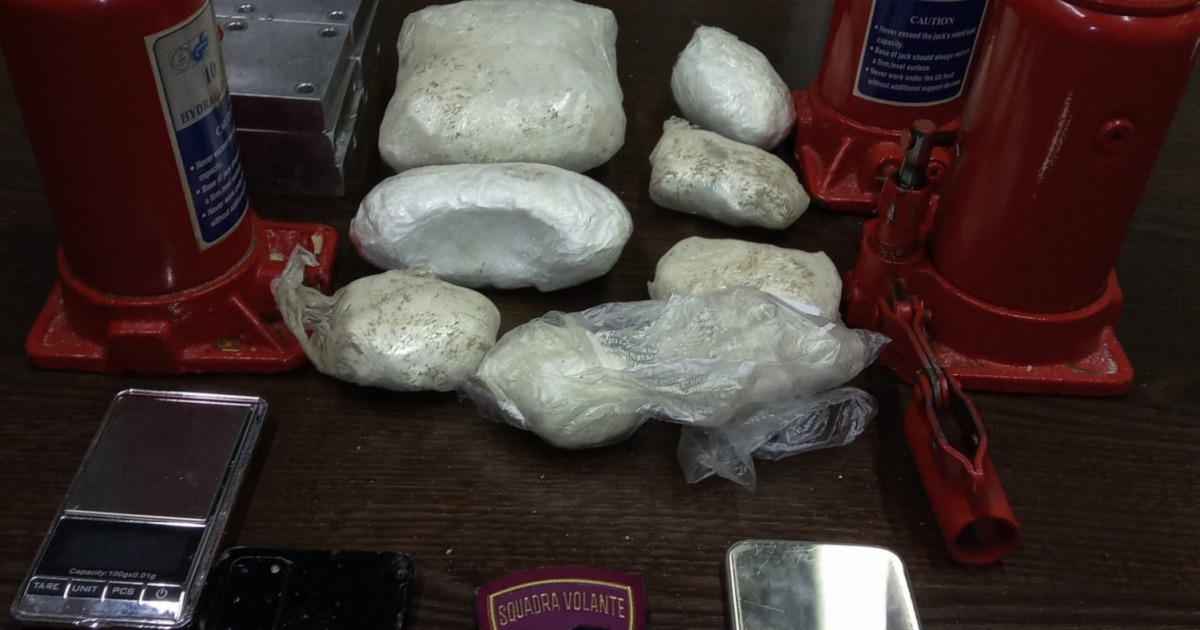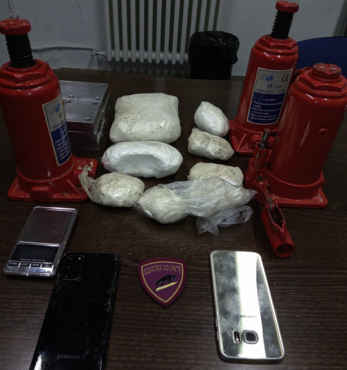 In bella vista sul comò della camera da letto gli agenti hanno trovato tre involucri in cellophane con all’interno sostanza stupefacente tipo cocaina per un peso complessivo di circa 65grammi. All’interno di una corte recintata di pertinenza dell’abitazione sono stati trovati altri cinque involucri contenenti cocaina nascosti sotto alcuni centimetri di terra, per altri 939 grammi per un totale di più di un chilo di droga oltre a materiale per il confezionamento della droga.