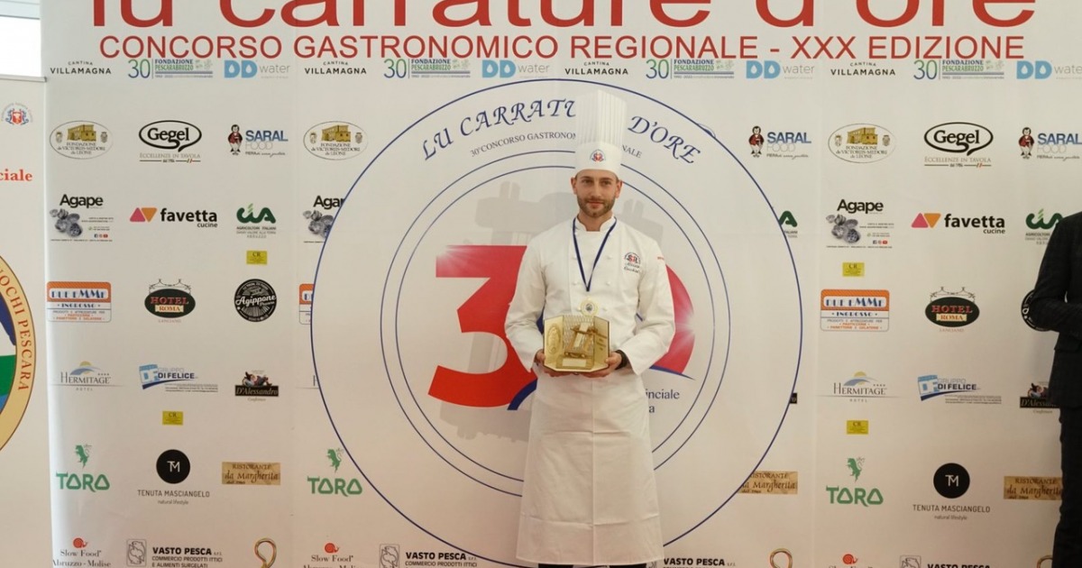 “Crema di patata del Fucino e cipolla di Fara Filiorum Petri, midollo alla brace e asparagi selvatici” é il piatto col quale lo chef di Chieti ha conquistato la giuria. I premiati nel concorso