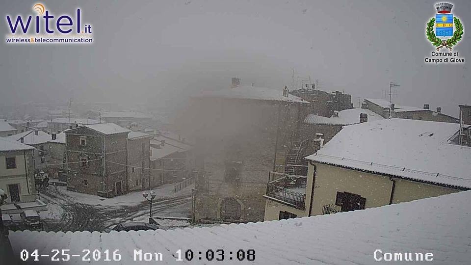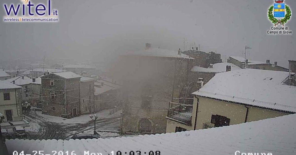 Il tempo pazzo di questo fine aprile ha portato anche la neve. Il Sindaco Cialente ha disposto la riaccensione immediata degli impianti