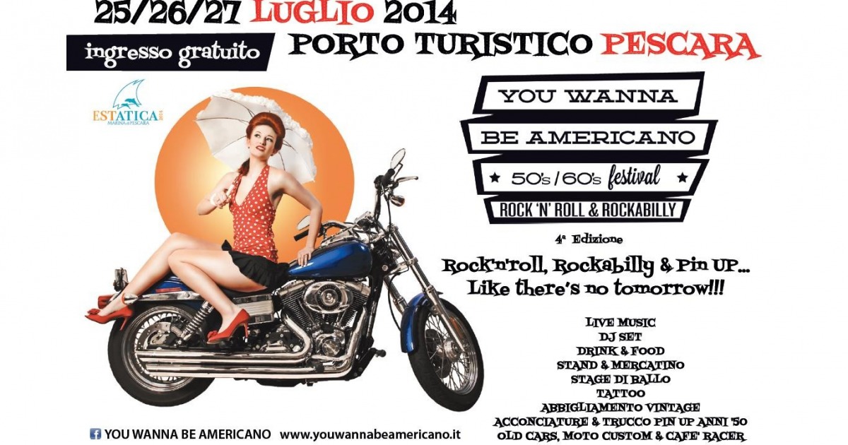 MARCO SBURZO PRESENTA YOU WANNA BE AMERICANO. Impossibile frenare la dilagante febbre Fifties: giunge alla quarta edizione YOU WANNA BE AMERICANO, il festival dedicato alla musica, alla cultura ed alla moda degli anni '50 e '60 in America e in Italia, organizzato da Marco "Sburzo" Di Pietro, l’evento più rockabilly della regione che ha trasformato il porto turistico di Pescara in una macchina del tempo capace di farci rivivere la magia di quei favolosi anni passati ma mai dimenticati.