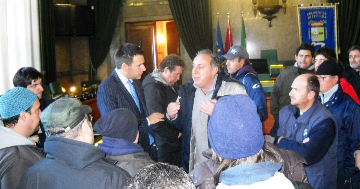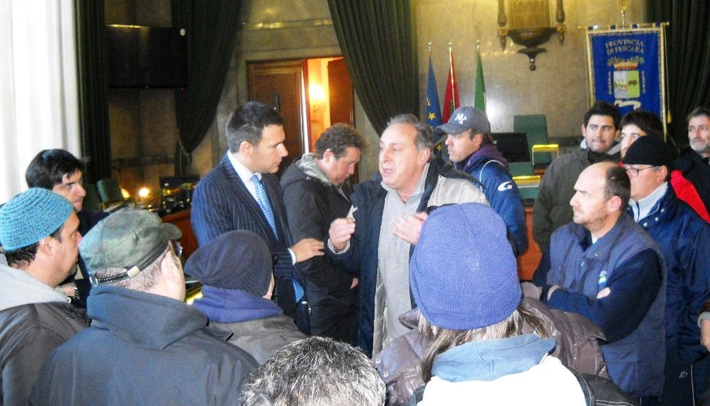 ARRIVANO I SOLDI PER LA MARINERIA. MA I LAVORI? Alla fine della prossima settimana è prevista l'erogazione, da parte dell'Inps, delle somme relative alla Cassa integrazione guadagni alla marineria pescarese per i primi sei mesi del 2012. Nello stesso tempo si continuerà a verificare se ci sono le condizioni per anticipare alla categoria gli ultimi tre mesi del 2012 di Cassa integrazione. Queste le novità emerse stamane nel corso di un incontro a cui hanno partecipato il presidente della Provincia di Pescara Guerino Testa, i rappresentanti della Caripe, Pino Mauro e Dario Pilla, il direttore dell'Inps Valentino D’Aloisio e i rappresentanti della marineria. Terminato l'incontro Testa ha comunicato le ultime novità ad alcune decine di armatori e pescatori che si sono riuniti della Sala Tinozzi del Palazzo dei Marmi. "Nei prossimi giorni – ha detto - ne sapremo di più ma nel frattempo l'Inps ha assicurato che alla fine della prossima settimana ci sarà lo sblocco dei pagamenti, per chi è in regola, delle somme che riguardano il primo semestre dello scorso anno. Aspettiamo di essere informati meglio, invece, sull’anticipazione delle somme della Cig per il periodo ottobre-dicembre 2012 mentre per il 2013 è necessario attendere il via libera a livello centrale, non trattandosi di una questione puramente pescarese ma che riguarda tutto il Paese. Nello stesso tempo – ha proseguito Testa - mi attiverò per avere informazioni più precise sui tre milioni di euro previsti dal Governo come ristoro per la marineria pescarese, il cui stanziamento va sollecitato, e sui tempi esatti dei lavori di dragaggio del porto” promossi dal ministero alle Infrastrutture (per 200mila metri cubi). Il presidente fa notare che “c'è molto pessimismo, assolutamente comprensibile, tra gli armatori e i pescatori che chiedono di tornare in mare nel più breve tempo possibile per ricominciare a lavorare e temono che le previsioni di intervento annunciate dal Provveditorato alle opere pubbliche e dalla ditta Sidra non vengano rispettate, come hanno ribadito questa mattina, al colmo della esasperazione".