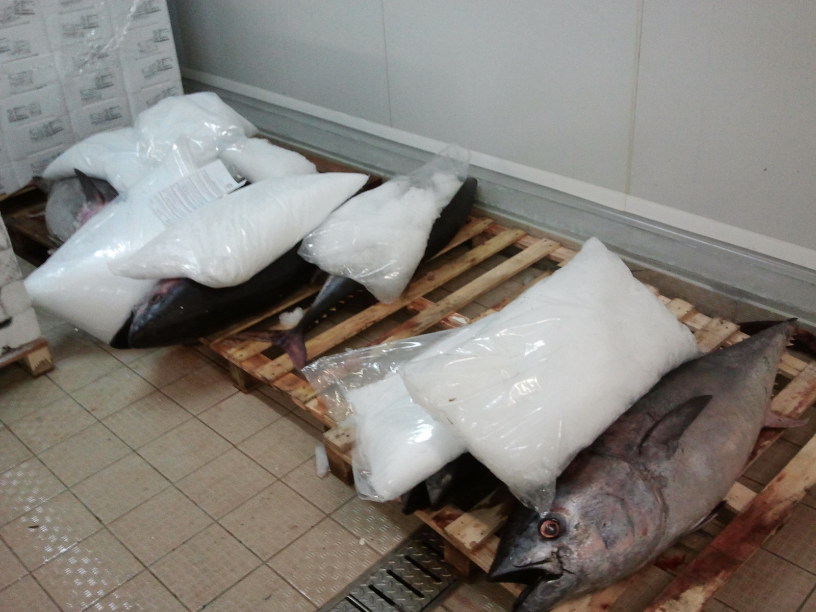 MAXI SEQUESTRO DI TONNO ROSSO NEL PORTO DI GIULIANOVA. Blitz della Capitaneria di Porto contro la pesca abusiva di specie ittiche pregiate nel porto di Giulianova. La Capitaneria di Porto ha posto sotto sequestro amministrativo un ingente quantitativo di tonno rosso, a seguito di normale controllo avvenuto. I militari del Comandante Pezzuto sono riusciti a rinvenire a bordo di due pescherecci, intenti allo sbarco di alici, un totale di 14 (quattordici) esemplari di Tonno Rosso (Thunnus Thynnus) per un quantitativo complessivo di kg. 500 circa, superiore in quantità e/o numero alla percentuale del 5% consentita come cattura accessoria o “by catch” prevista dal Decreto Direttoriale n. 8447 del 17.04.2013 del Ministro delle Politiche Agricole Alimentari e Forestali .