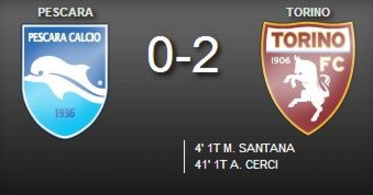LA GARA: IL PRIMO TEMPO. Passano solo 4' e il Torino è in vantaggio con Santana che, in sospetto fuorigioco, ottimizza il cross di Cerci: nulla ha potuto il tentato intervento di Perin sull'attaccante granata. Al 18' ancora il Torino pericolosissimo con un colpo di testa di D'Ambrosio su cross dalla bandierina di Santana: tuffo in area e palla fuori di un niente. Passa un minuto e Meggiorini s'incunea sulla trequarti e conclude dal limite: palla fuori di poco. Primo acuto del Pescara una incursione centrale di Weiss conclusa con una fucilata passata a breve distanza dal palo sinistro di Gillet. Poi è cerci a provarci sia su punizione che sulla ribattuta della barriera, ma Perin blocca a terra. A 41' nuovo patatrac biancazzurro sull'asse Meggiorini-Cerci, col triangolo chiuso in maniera vincente dal secondo. Per il Pescara è notte fonda.