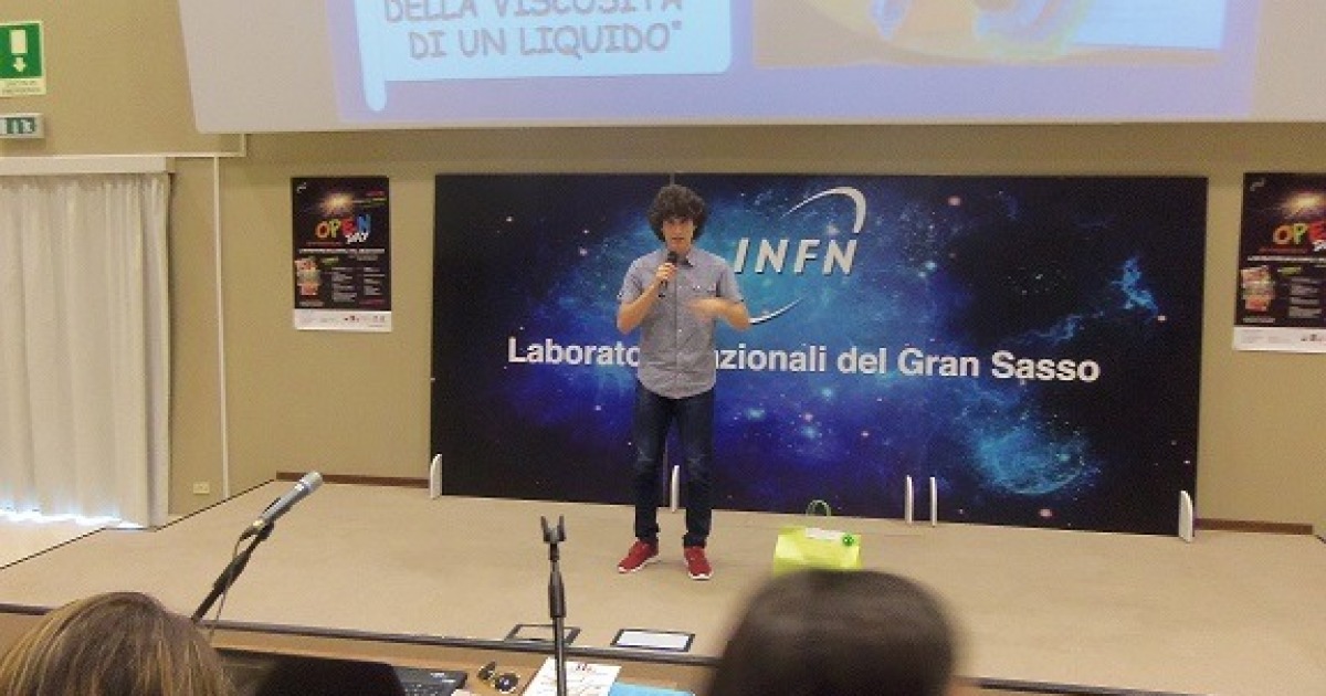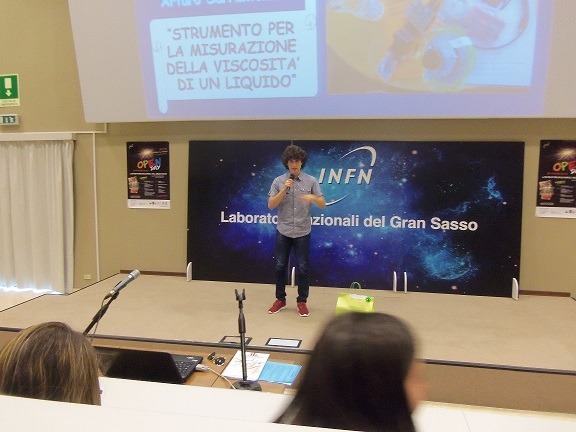 Spoglia inoltre ha esposto il suo lavoro, attraverso una vera e propria lezione, a una platea formata da studenti e insegnanti nell’aula magna della sede di Assergi dei Laboratori, ricevendo il plauso di tutti.