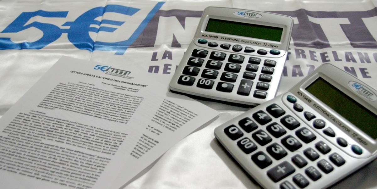 Ad accompagnare le calcolatrici una lettera aperta, che rappresenta un vero e proprio sfogo dei giornalisti sottopagati. A partire da un editoriale di Tedeschini, in cui si parlava di "precarietà lavorativa e umana", di fughe all'estero o di un "futuro 'cinese' in cui produrre e vendere merce a un prezzo che solo fino a un paio di anni fa avremmo considerato ridicolo", i freelance di 5EURONETTI scrivono al direttore "per conto dei 'cinesi' della 'sua' azienda; ragazzi e ragazze, uomini e donne, spesso laureati, spesso con master, che lavorano al Centro nell'ombra".