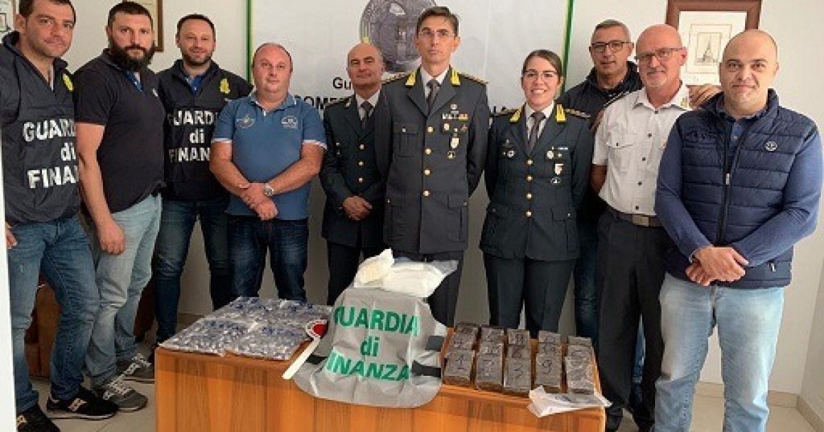 I finanzieri scoprono un giro di droga imponente: 1,5 chili di cocaina purissima, 14 chili di hashish, marijuana e denaro contante