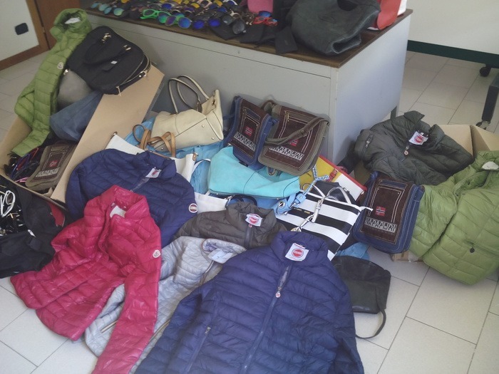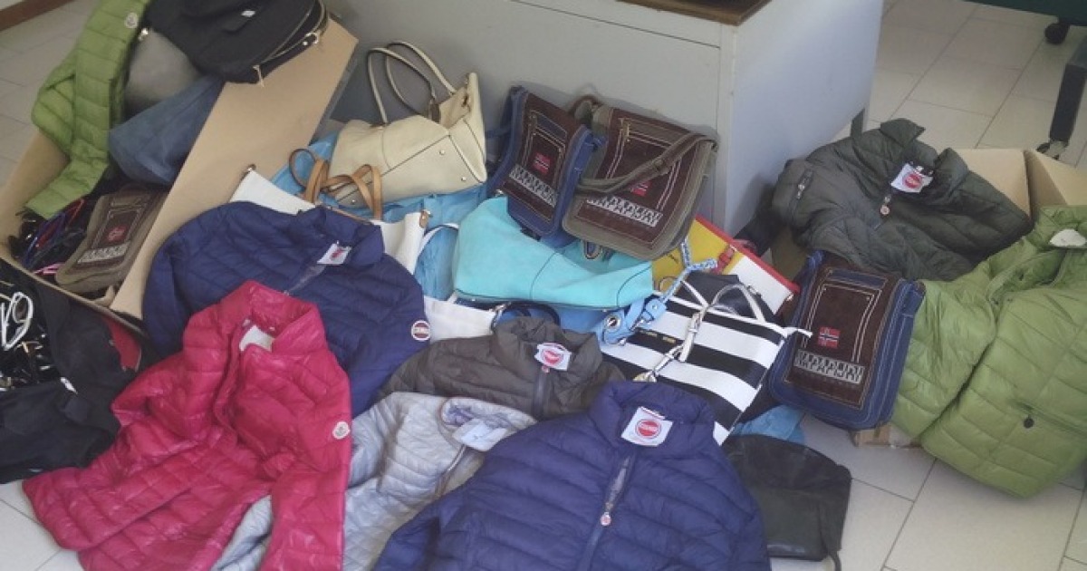 Sono stati recuperati diversi capi d'abbigliamento Moncler e Colmar, oltre 800 paia di occhiali Ray-Ban, Persol e Gucci, e 100 borse con le griffe Prada e Tod's. La merce, abilmente contraffatta, era ammucchiata in alcuni cartoni e buste di plastica.