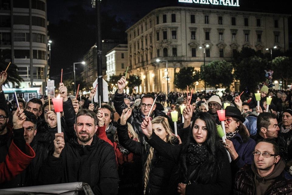 PIAZZA SALOTTO PER PARIGI E LA LIBERTA' DI STAMPA. A Piazza Salotto alcune migliaia di persone si sono riunite nella manifestazione di vicinanza e solidarietà alla Francia e alle famiglie delle vittime degli attacchi terroristici alla redazione di Charlie Hebdo. Insieme, cittadini di diversa etnia e credo religioso, con storie diverse e la stessa aspirazione a combattere la violenza e gli integralismi, ed il sindaco di Pescara, Marco Alessandrini, il cui papà, l'indimenticato giudice Emilio, ricordiamo che venne ucciso da un commando di Prima Linea a Milano il 29 gennaio 1979. "Se Parigi chiama Pescara risponde. Penso non si debba cedere alla paura. E' una fiaccolata di solidarietà per i giornalisti di Charlie Hebdo, per tutti quanti sono caduti in nome di una violenza brutale, cui gridare il nostro NO". Molta partecipazione, anche delle comunità dei migranti di Pescara, dei Bengalesi, Iraniana, Tunisina, Marocchina, Senegalese e Algerina, tra i promotori della manifestazione con Amnesty, Rifondazione, Arci, Sel, Pd, Cgil, Pax Christi, Giovani Comunisti, Giovani Democratici.