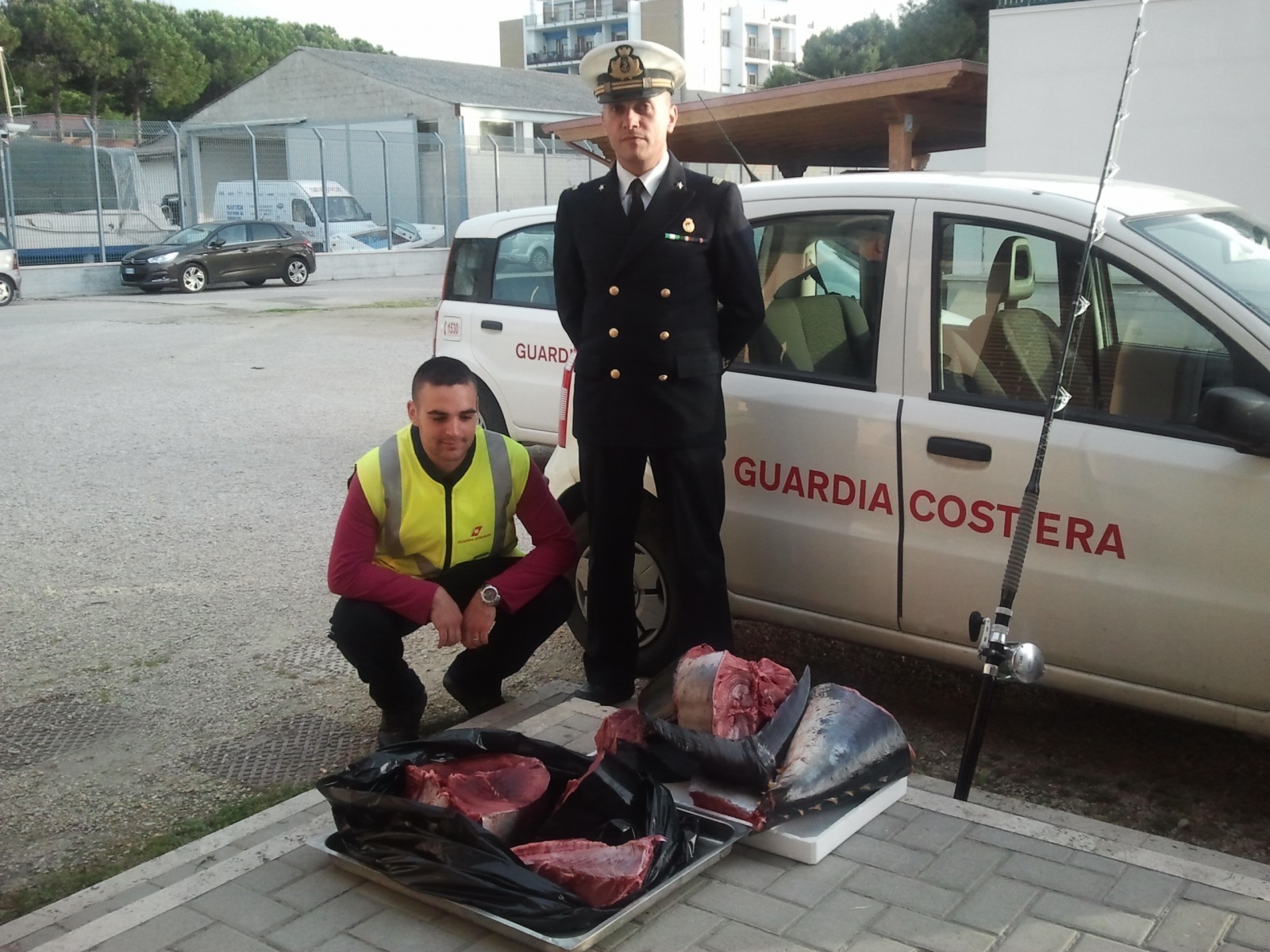 TONNO ROSSO SEQUESTRATO NEL PORTO DI GIULIANOVA. Prosegue la lotta della Capitaneria contro la pesca abusiva. Gli uomini del comandante Sandro Pezzuto hanno scoperto due pescatori di frodo che, ieri sera, erani rientrata presso la banchina di Riva del Porto. Fin dalle fasi di ormeggio e sbarco dall'imbarazione ci si è accorti che c'era qualcosa di anomalo: a bordo due borsoni, molto pesanti, venivano immediatamente messi all'interno di un autoveicolo parcheggiato nelle vicinanze. Sottoposti a controllo è spuntato fuori il tonno rosso per un quantitativo complessivo di circa 50 chili, già eviscerato e sezionato in tranci pronti per la vendita. Il pesce è stato dunque sequestrato, inviato alla Asl per i controlli sanitari e infine donato alla mensa "Piccola Opera della Caritas". Mentre il pescatore è stato multato di mille euro. «La pesca abusiva di specie pregiate quali il tonno rosso – dichiara il Comandante Sandro Pezzuto – finisce di sovente per essere smerciata nei ristoranti o grosse rivendite della nostra costa, mancando tutti i requisiti di legge quali i controlli sull’ igiene e salubrità sul pescato».