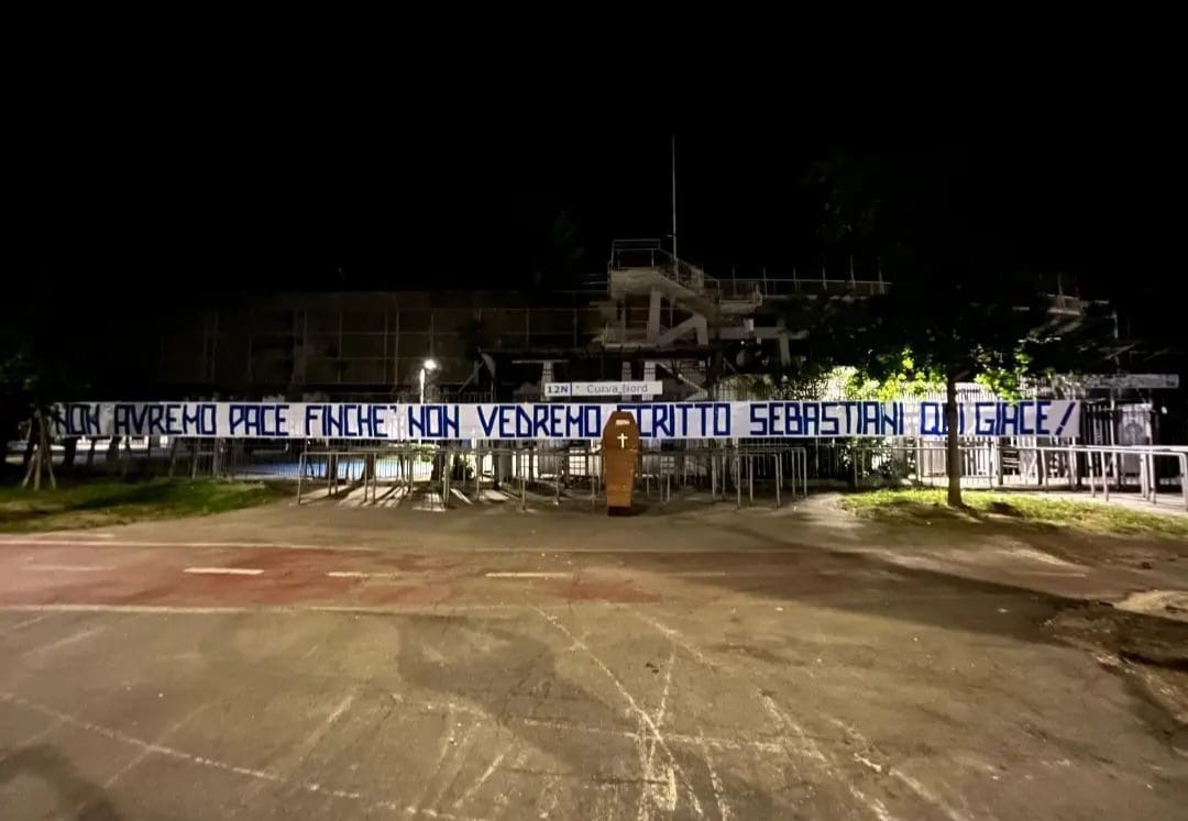 Nottetempo alcune persone hanno esposto uno striscione con una bara. Sulla vicenda indaga la digos