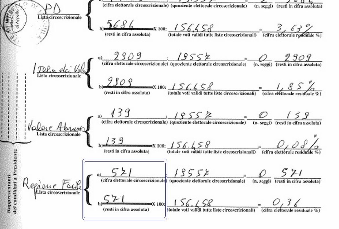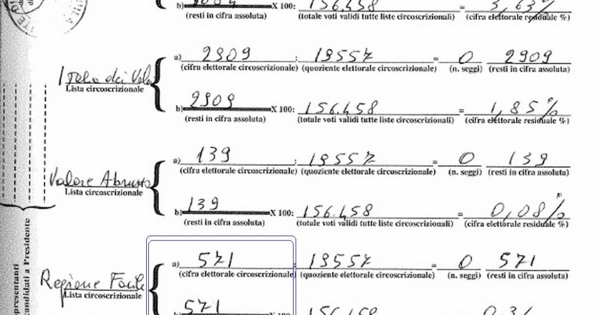 I voti, infatti, erano 8571 e non soli 571, cioè 8mila di meno come riportato sul documento.